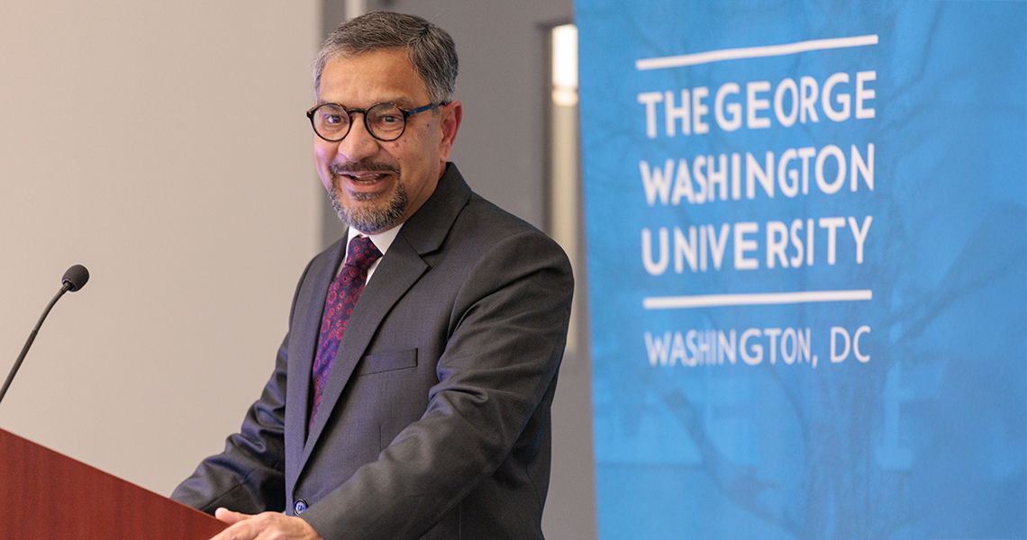 The George Washington University (GW) School of Medicine and Health Sciences (SMHS) celebrated the installation of two prominent department chairs as endowed professors on Dec. 2. Sanjay Maggirwar, PhD, MBA, professor and chair of microbiology, immunology, and tropical medicine (MITM), was installed as the Bicentennial Distinguished Chair in Biomedical Discovery Science. David Mendelowitz, PhD, professor and chair of pharmacology and physiology and professor of anesthesiology and critical care medicine, was installed as the Dr. Henry D. Fry Professor of Physiology.